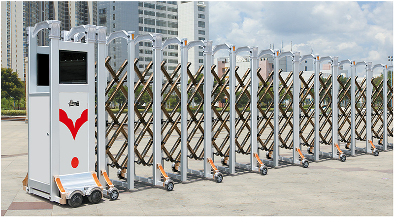 電動伸縮門主要由門體、驅動器、控制系統構成。伸縮門的門體采用優質鋁合金及普通方管管材制作,采用平行四邊形原理鉸接,伸縮靈活行程大。電動伸縮門的驅動器采用特種電機驅動,蝸桿蝸輪減速,并配有手動離合器,停電時可手動啟閉,伸縮門的控制系統有控制板,按鈕開關,另可根據用戶需求配備無線遙控裝置。