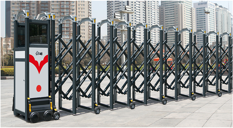 電動伸縮門主要由門體、驅(qū)動器、控制系統(tǒng)構(gòu)成。伸縮門的門體采用優(yōu)質(zhì)鋁合金及普通方管管材制作,采用平行四邊形原理鉸接,伸縮靈活行程大。電動伸縮門的驅(qū)動器采用特種電機驅(qū)動,蝸桿蝸輪減速,并配有手動離合器,停電時可手動啟閉,伸縮門的控制系統(tǒng)有控制板,按鈕開關(guān),另可根據(jù)用戶需求配備無線遙控裝置。